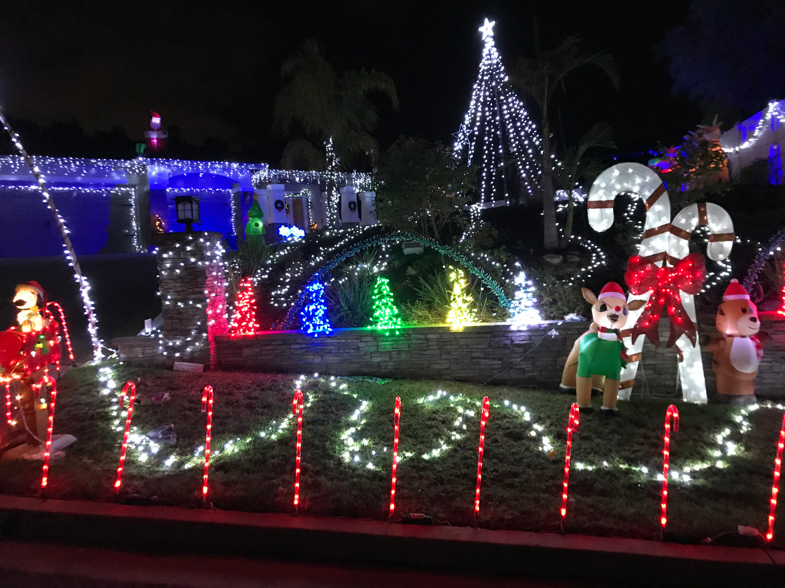 Candy Cane Lane has become a beloved annual holiday tradition in San Marcos, Ca. With the help of several Dads each year, a quiet suburban street is transformed into a winter wonderland. The event includes an FM radio-synched light show with music, dazzling displays, over a thousand candy canes lining the streets and even snow showers for kids to play in. Hundreds of families come from all over to enjoy this event each year.
