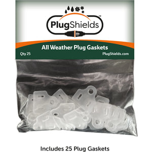 The All-Weather Plug Gasket material was purposely designed to be extremely pliable and waterproof. The thickness is approximately 1/16 inch and does not interfere with the power requirements of the connection. When the plug is connected, the All-Weather Plug Gasket will compress between the male and female plugs allowing the mechanical friction of the connection to hold the shield securely in place.