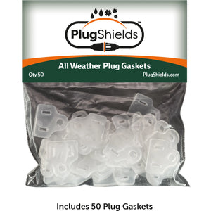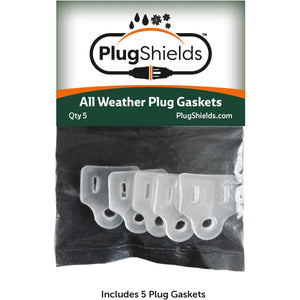 Our all weather plug gaskets are designed to block out rain and snow that gets into outdoor extension cord plug connections and holiday light string plugs, causing GFCIs to get tripped. Installs in seconds, can handle any type of weather and easily stores on the cord or light string plug for the next use. Fits 2 and 3-prong plugs.